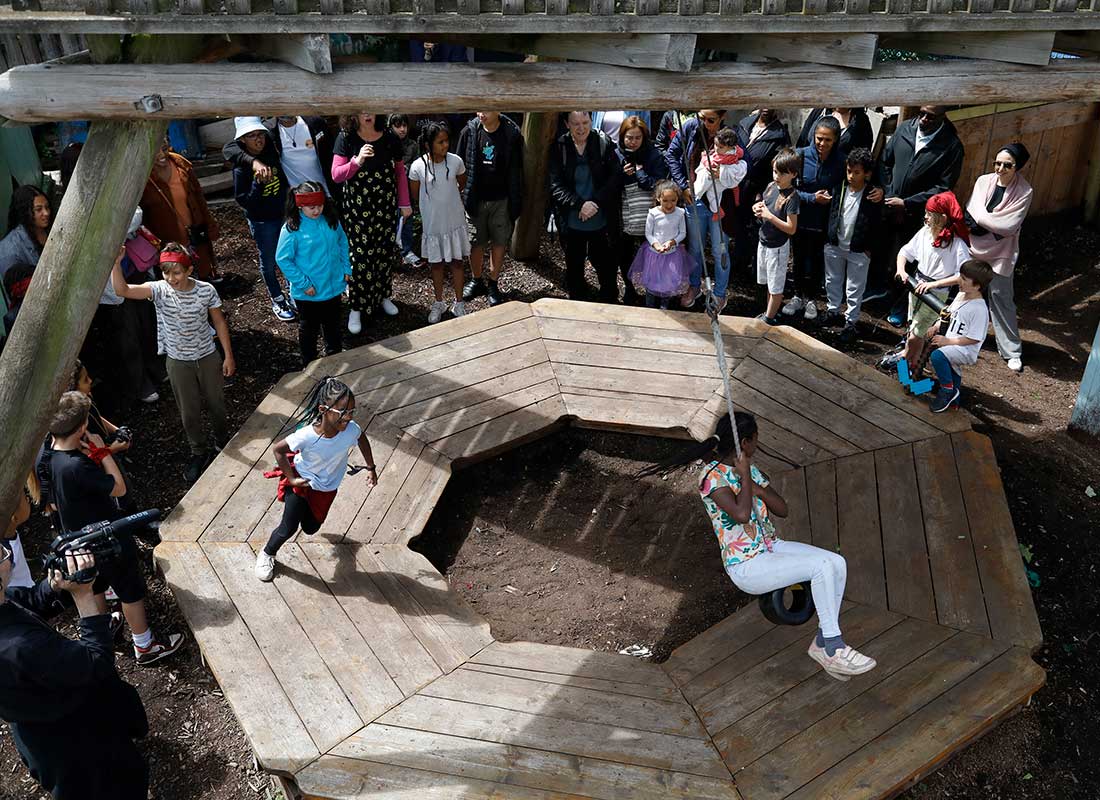Venture's playground was born in the 1950's out of a need for a play space for local working class kids. Children had previously played in the rubble of burnt-out buildings after World War II. Ventures wooden play structures were built by local residents and kids. The playground, supervised by adults, was always the children's territory.